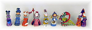 Artist Lisa Snellings, perhaps most known for her 2-inch high Poppet sculptures, now has a series of Wonderland Poppets. The Dormouse, Mad Hatter, Cheshire Cat, Queen of Hearts, White Rabbit, Alice, Caterpillar, and Dee and Dum are available in her eBay store.