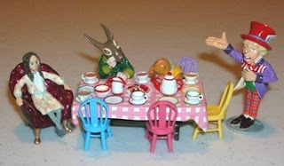 Minnie Maria (see previous post Rackham Alice Miniatures) has come up with a new batch of minatures: the entire Mad Tea Party.