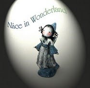Artist Lisa Snellings makes Poppets. In her words, “They’re adorable… and sort of… creepy.” Last year she made an Alice in Wonderland series that ran to eight or ten pieces and it seems she may be starting 2010 with a similar project. Currently she is auctioning Alice and the Caterpillar on Ebay (auction closes January 6th) but the item descriptions suggest more Wonderland Poppets may be on their way.